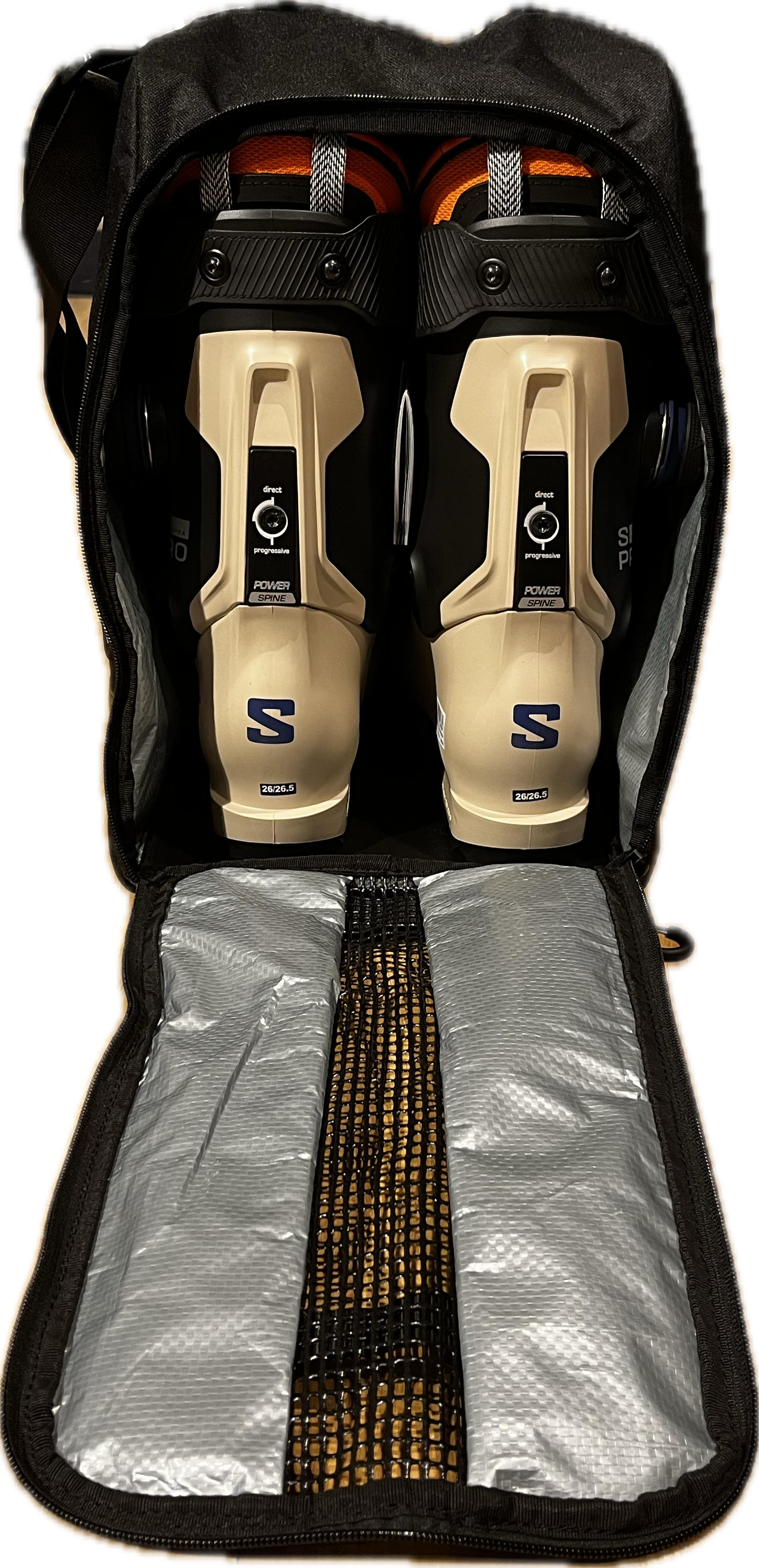 Tasken er fremstillet i slidstærke materialer med forstærkede syninger, mesh-ventilation, og en vandafvisende konstruktion, så dit udstyr forbliver tørt og sikkert. Perfekt til rejsen til skisportsstedet eller til daglig brug.