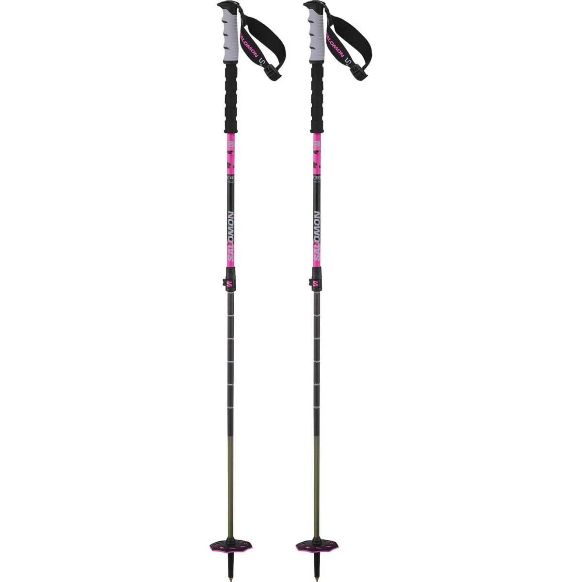 Salomon Steep Pro Vario S3 er en justerbar high-performance skistav udviklet til freeride, all-mountain og teknisk skiløb, hvor fleksibilitet, styrke og præcist greb er afgørende. Med sit markante sort/pink design kombinerer staven funktionel performance med et sporty og moderne udtryk.